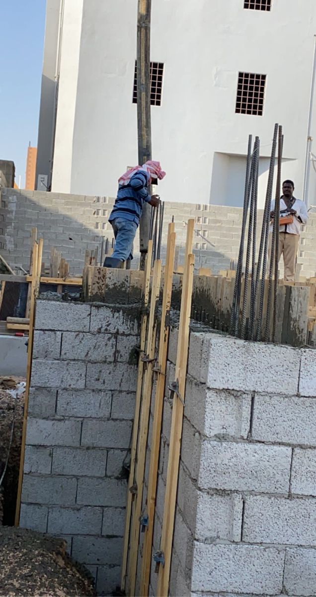 • بناء الجدران والأعمدة: ضمان الهيكل القوي الذي يتحمل وزن المبنى.
